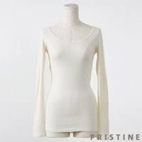 表側がオーガニックコットン、肌側がシルクのUネックプルオーバー。