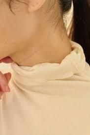 トップスからのぞきにくいよう、襟ぐりを大きめにしました。