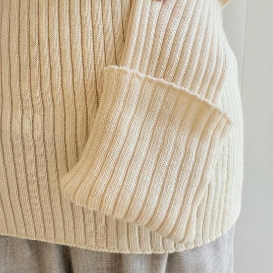 素材の良さを生かして仕上げているので、 着るほどにやわらかさとやふんわり感が増します。袖口の折り返しのリブがポイントです。