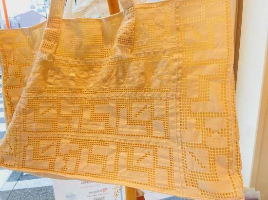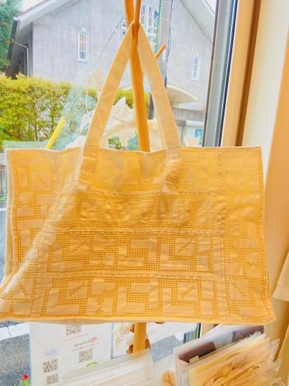 PRISTINEオリジナルのロゴ入りトーションレースを全面に使用したマチ付きバッグです。