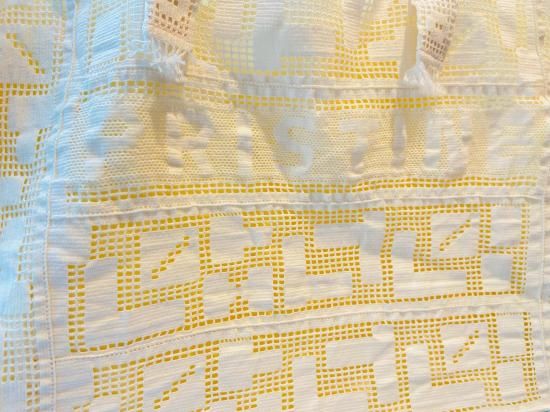幾何学柄のレースとPRISTINEロゴ入りのレース、夏に気持ちのいい素材使い。