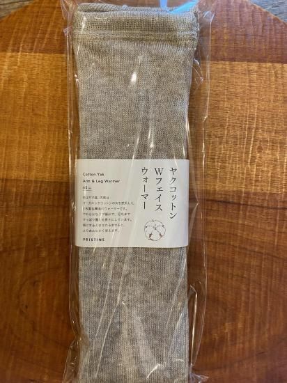表側はヤク20%混の糸、内側はオーガニックコットンの糸を使用した、2枚重ねの構造のウォーマー。