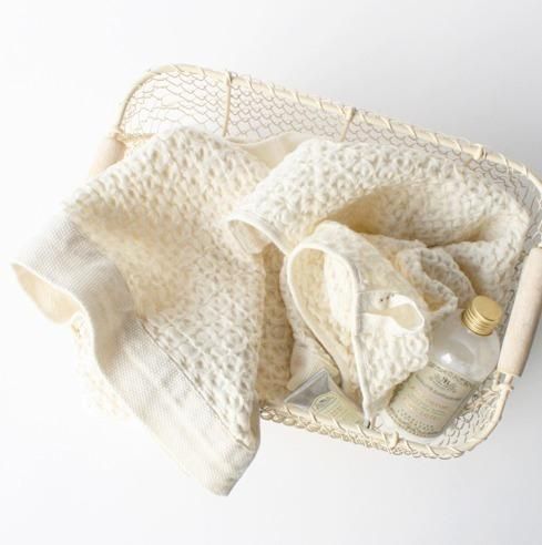 リネンのサラッとした風合いとオーガニックコットンの柔らかさを併せ持ったワッフル織りのタオルです。 馴染むまでは少し硬さが気になるリネンですが、コットンと混ぜることで、使い始めから柔らかく・耐久性のある作りになっています。