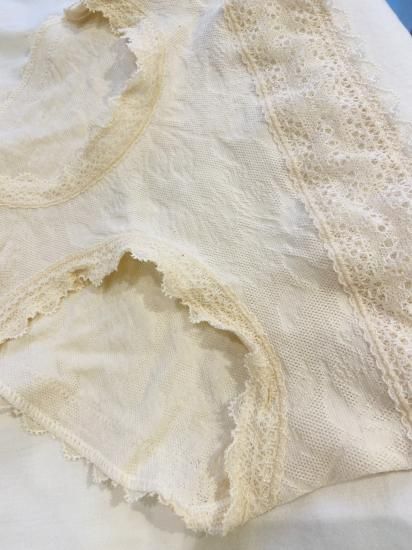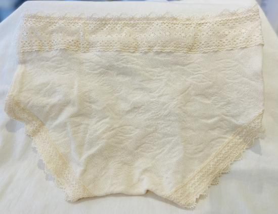 生地はレーシーシリーズの肌着のために開発したフラワージャガード、マチ部分は継ぎ目がなく肌触りのいいパイルでふわふわ。