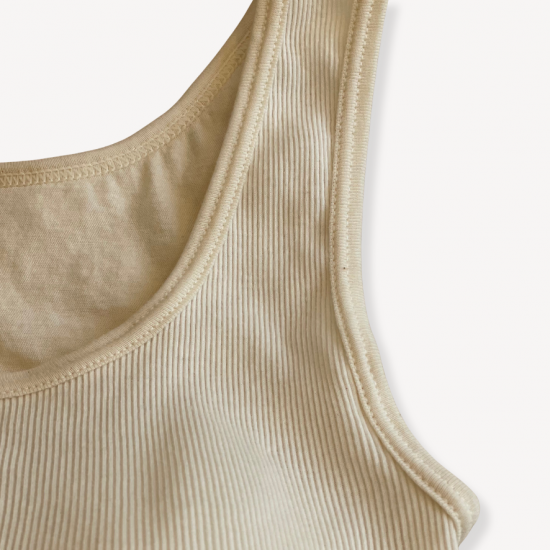 アンダーバストを支えるゴムは、メッシュのオーガニックコットンゴム。