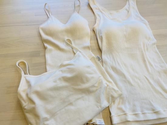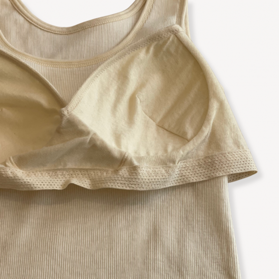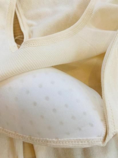 カップ部分はオーガニックコットンの極薄天竺で覆い、肌あたりなめらかで汗をやさしく吸収します。