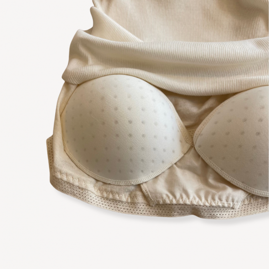 中はバストが脇に流れないようにカップを縫い込んだ構造になっています。