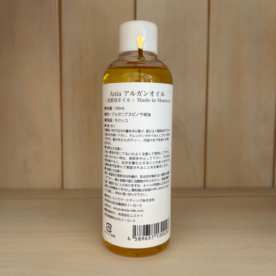 「Ania アルガンオイル 250mL」も新鮮、オーガニックにこだわっています。