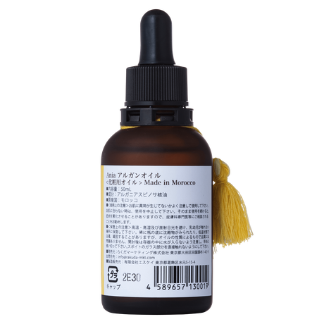 Aniaアルガンオイルは、やわらかくサラッとしたしたテクスチャーで、しっとりと肌を保湿し、代謝を高めて瑞々しい肌へ生まれ変わります。
