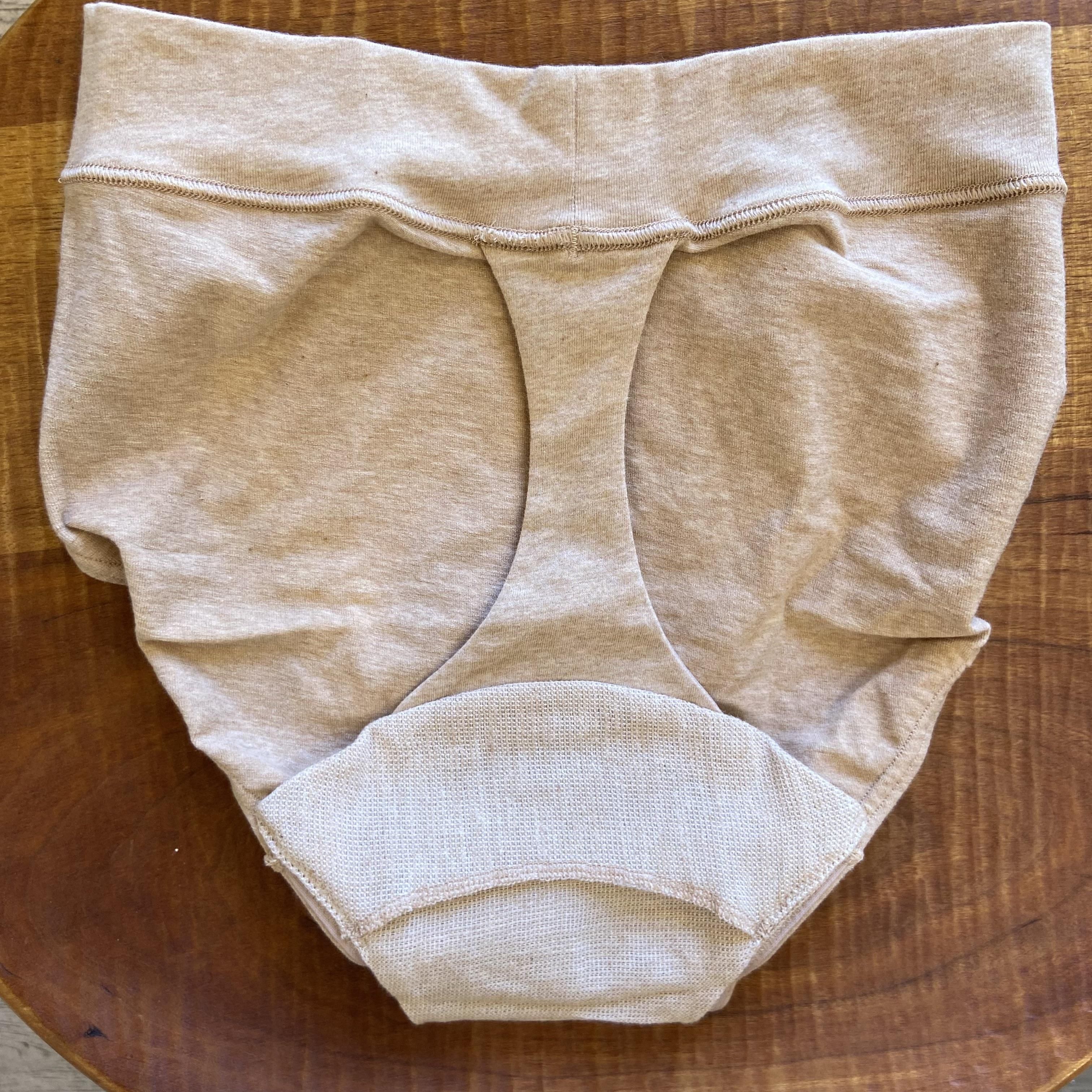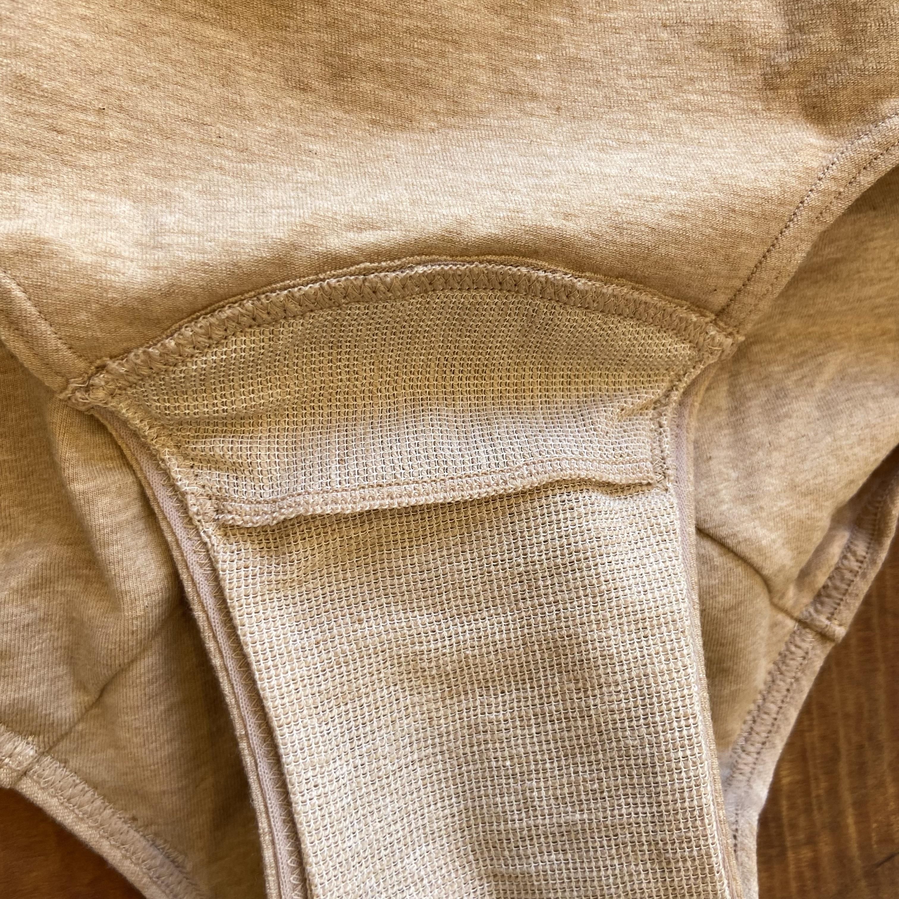 クロッチは羽根を折り込める2重構造で、ナプキンを前後に差し込んで使うポケット付き。
