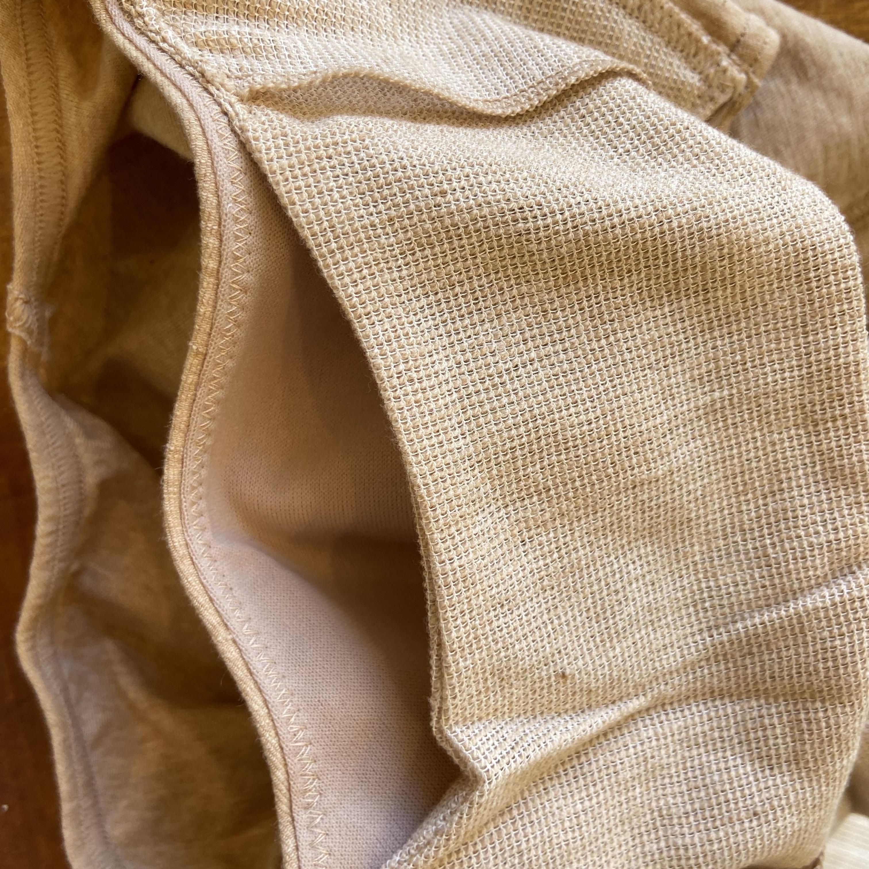 おなかの部分には、締め付けを感じないよう、あえてゴムを入れず作った、やさしい仕様です。