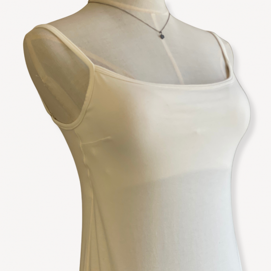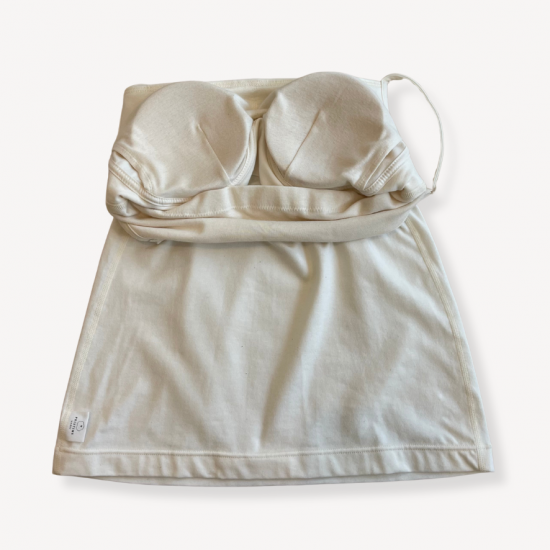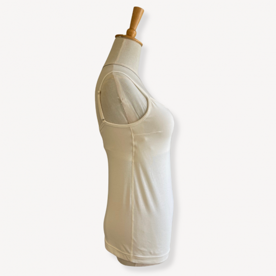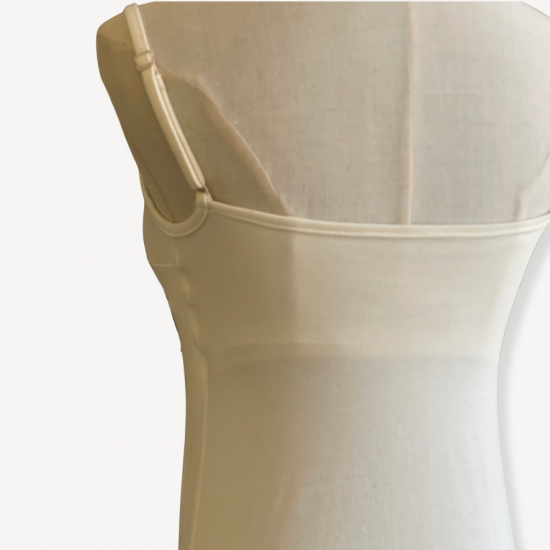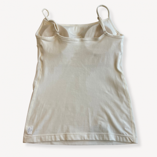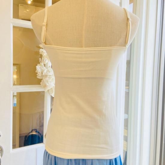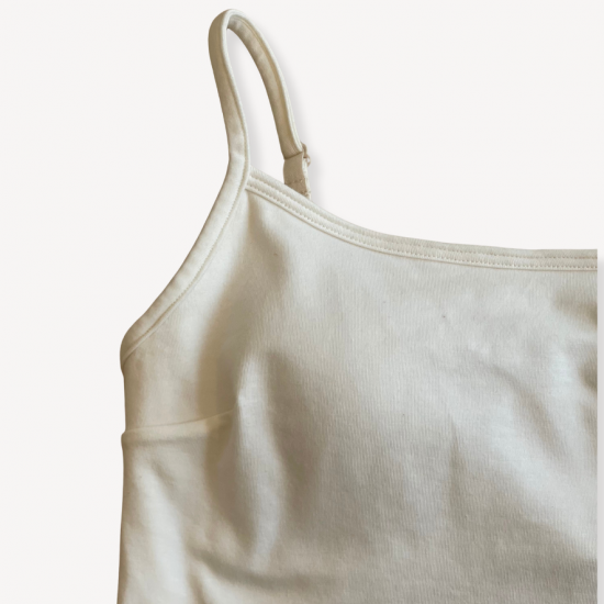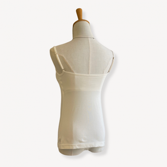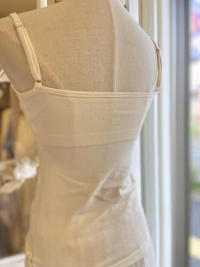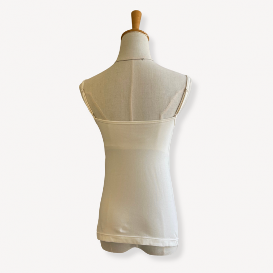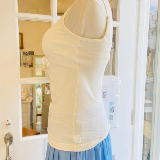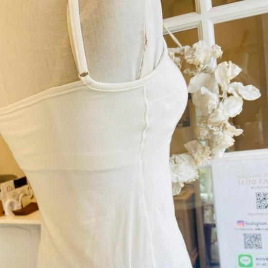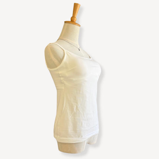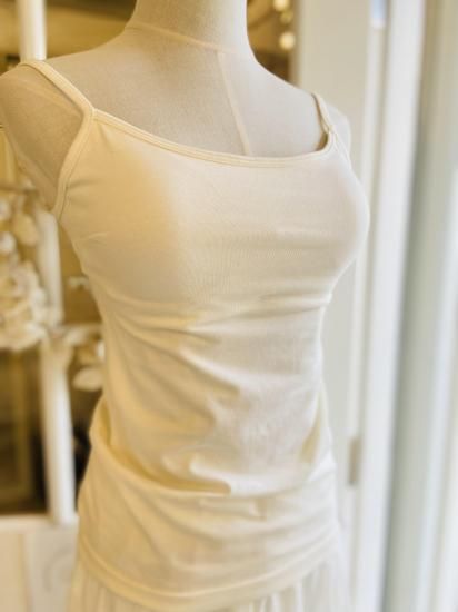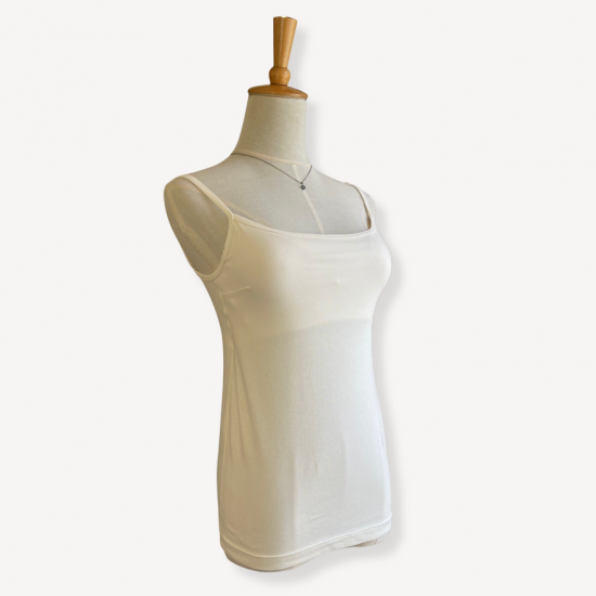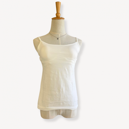 体にほどよくフィットし、カップの取り外しもでき、見せても着られる便利なキャミソール。