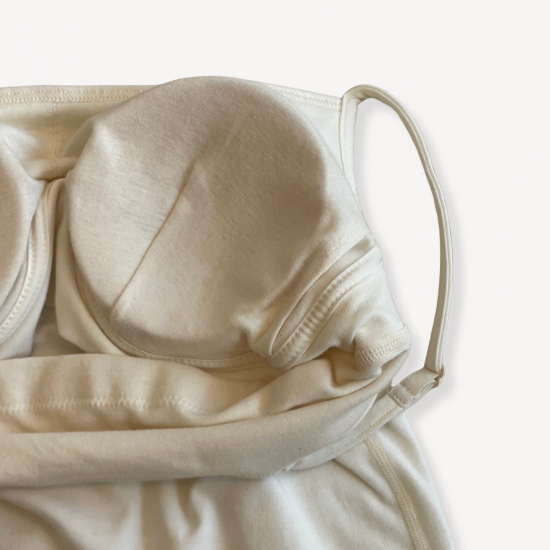 内側は立体縫製ですので、カップが安定し、バストラインをきれいに見せてくれます。