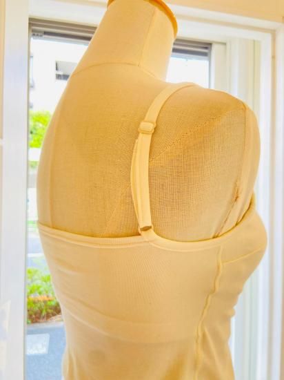 肩ひもの長さを少し引き上げるよう調整するとバストがキレイに着用いただけます。