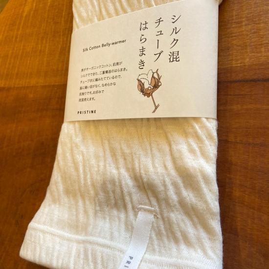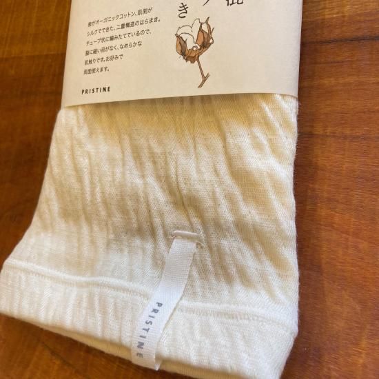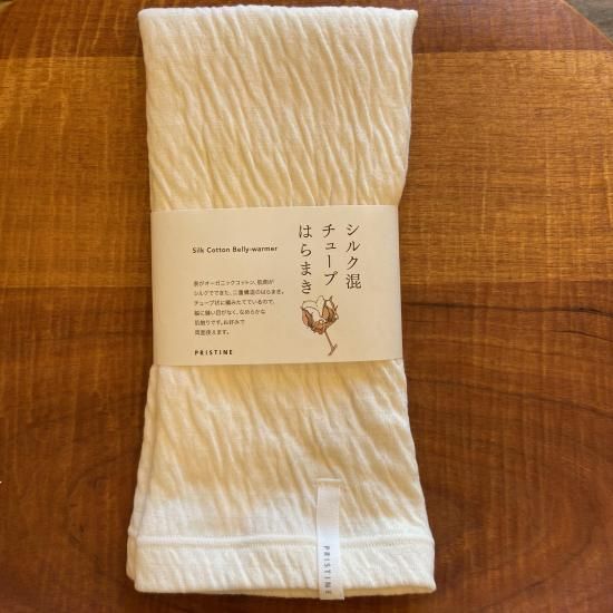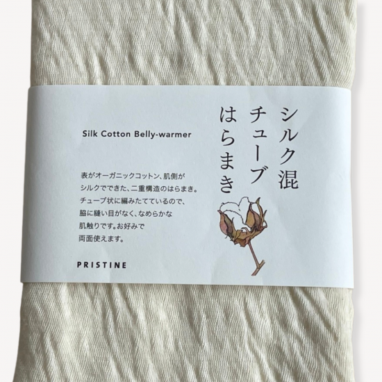 表がオーガニックコットン、肌側がシルクでできた2重構造のチューブ腹巻。