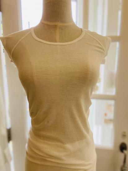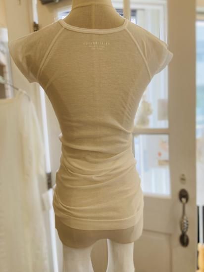 強撚糸で編みあげた、さらさらタッチのフライスで作ったシンプルなフレンチスリーブです。