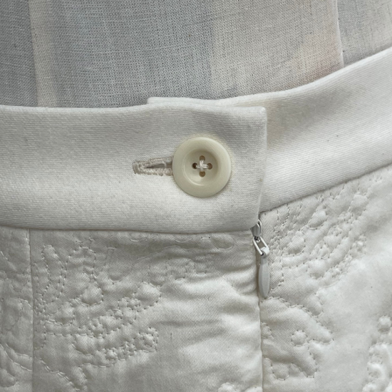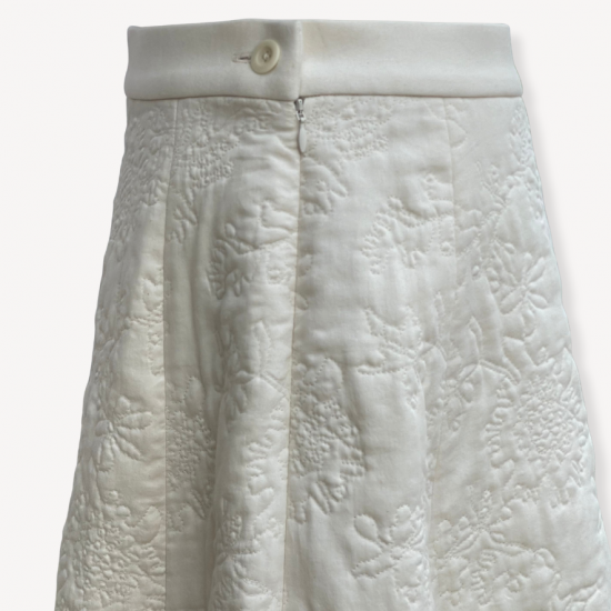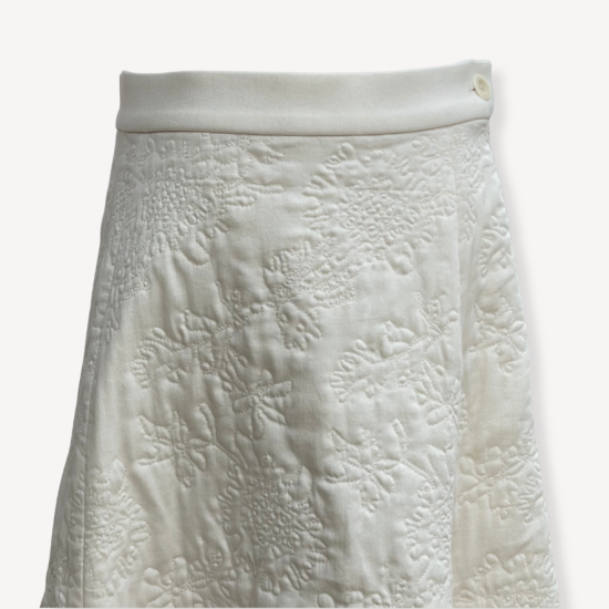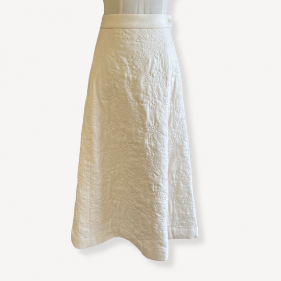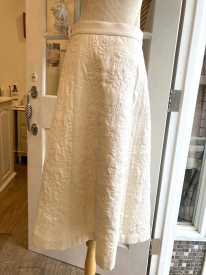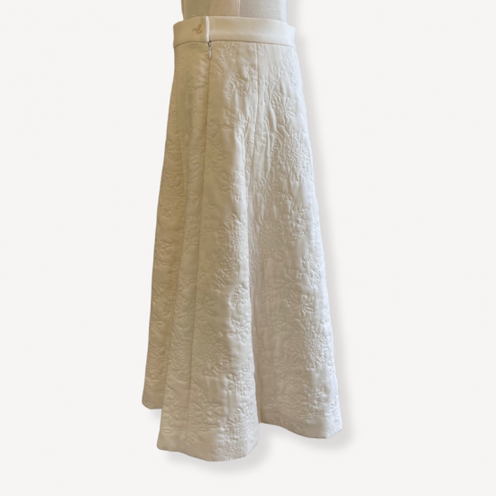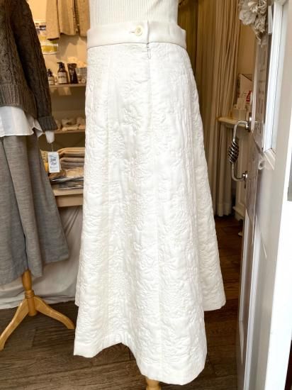 花々の表情豊かなキルトシリーズサテン生地にウール中綿を花柄でキルトした、フラワーキルトシリーズのフレアスカート。