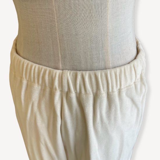伸びやかでとろけるような肌ざわりリラクシーな触り心地とともに上品な雰囲気も併せもつベロアの生地。ループ状に編まれたパイルをカットすることで、滑らかな光沢のある生地に仕上がっています。カットソー素材なので程よい伸縮性があり、心地よくフィットします。