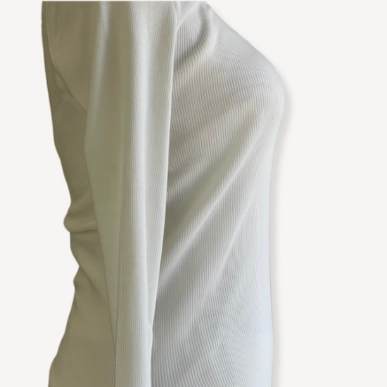 脇に縫い目のないチューブ仕立てで、体に沿って心地よくフィットするテレコ生地。 糸を引き揃えて編むことで、今までにはないしっかりとしたハリ感、肉感のあるテレコ素材で、安心感のある着心地が特徴です。