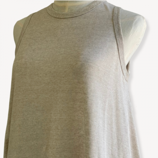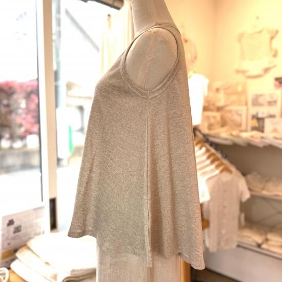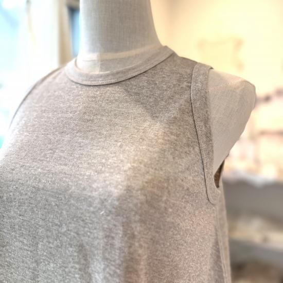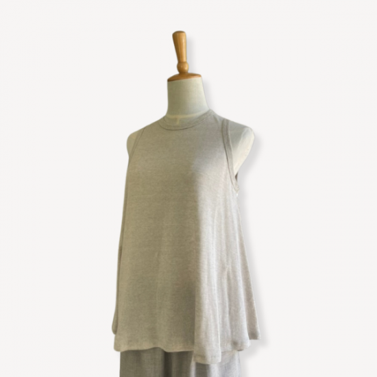コットンリネンプレーティング天竺を使用したノースリーブフレアトップス。