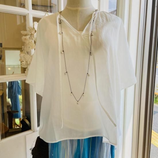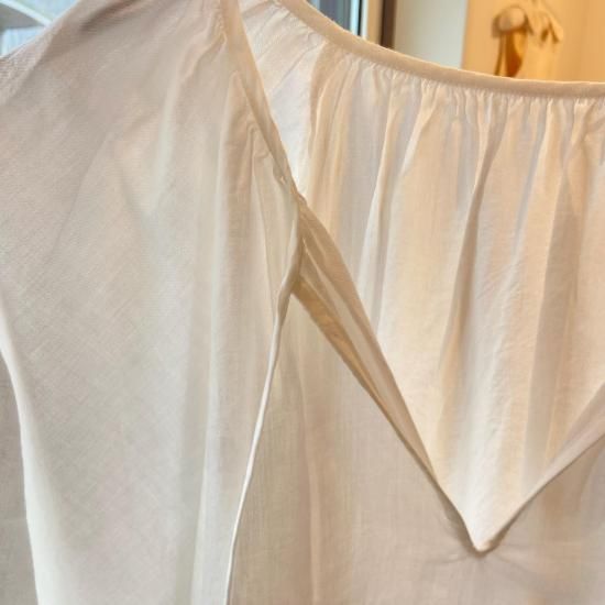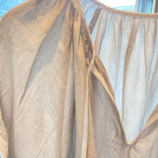 上品な透け感と柔らかな表情が特徴のカルゼの生地を使用したギャザーブラウス。 身頃も袖もふんわりとしたシルエットでとても軽やかに涼しく着ていただけます。ギャザーの入れ方や分量、丈感などバランスにこだわり、シンプルながら華やかさのある一着。