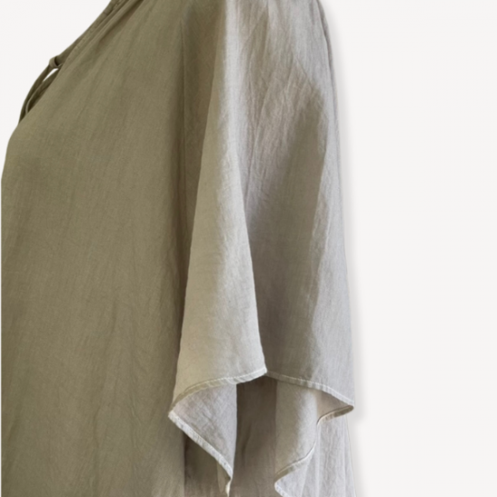 草木染めの色味が優しくて気に入りました。軽くてさらっとしている素材で、暑い日でもストレスなく着られています。