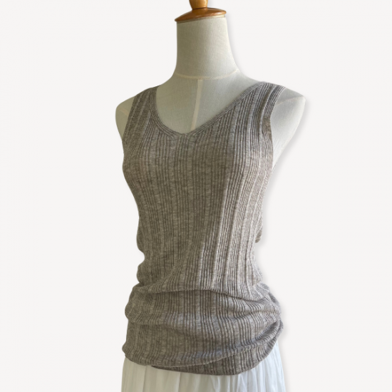 サラリとした肌触りが特徴のヤク混紡糸「爽」を使用した、ランダムなリブが目を惹くタンクトップです。伸縮性があり程よく体にフィットするサイズ感、脇に縫い目のない無縫製もうれしいポイントです。M、L2サイズ展開。