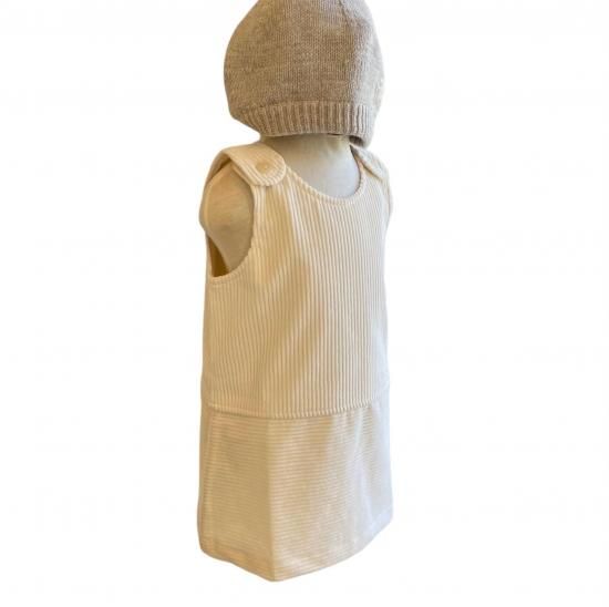 スカート部分はあえて生地をヨコ地使いする事によって、ボーダー見えさせているところもデザインの大きなポイントとなっています。