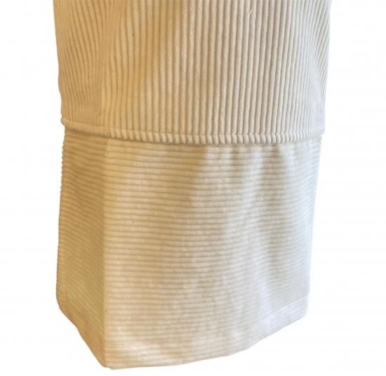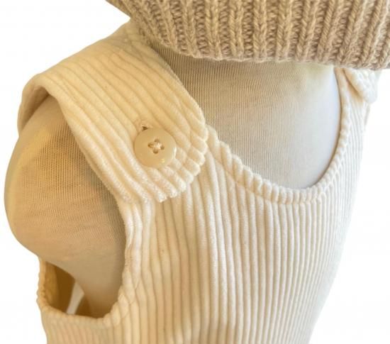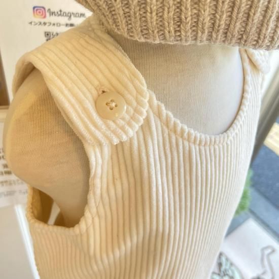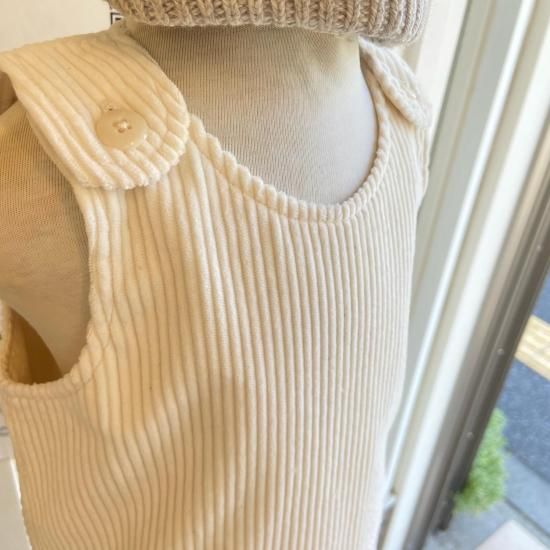 タイトめシルエットのジャンパースカートは太い畝が特徴のコーデュロイ。