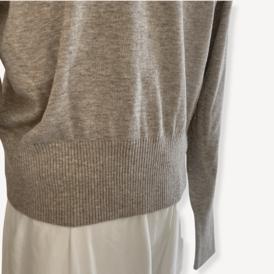 コンパクトなデザインのニットは、ボリュームのあるボトムスや、ワンピースとあわせてもきれいにきまります。M,Lサイズから選べるので、ジャストサイズで着こなしたい一枚。