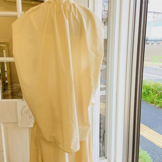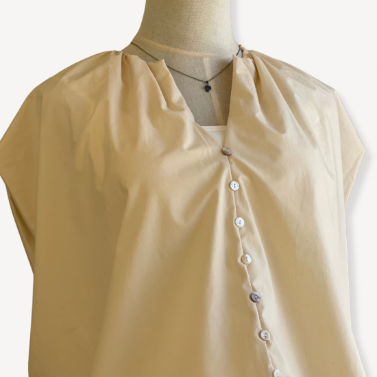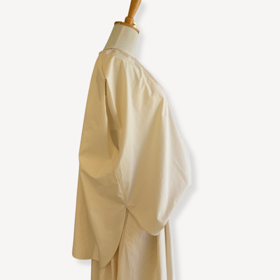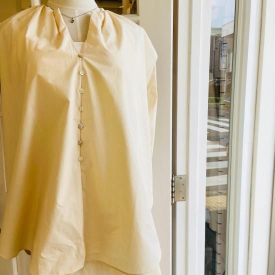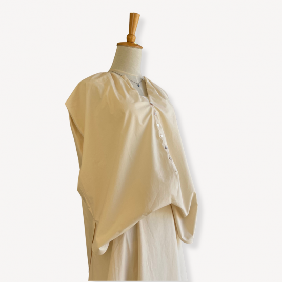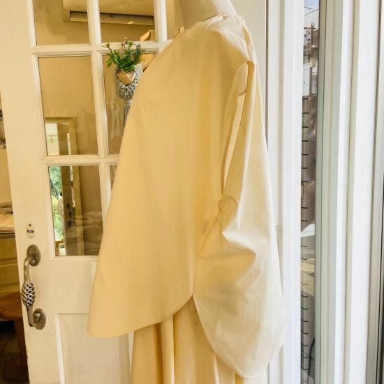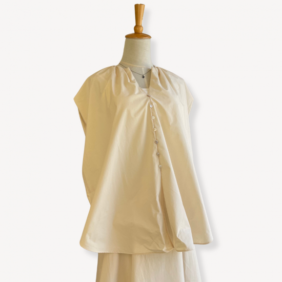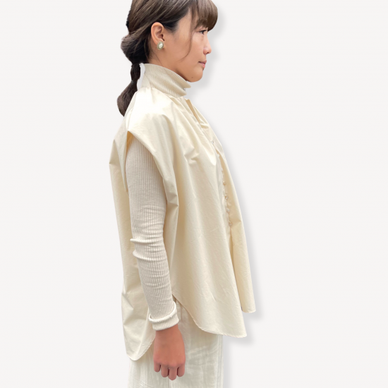 高密度でハリ感のあるタイプライター素材を活かしたオーバルブラウス。肌離れのよいボリュームのあるデザインです。はっと目を引くきれいに立体的にみえるフォルムにこだわりました。