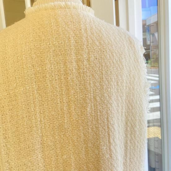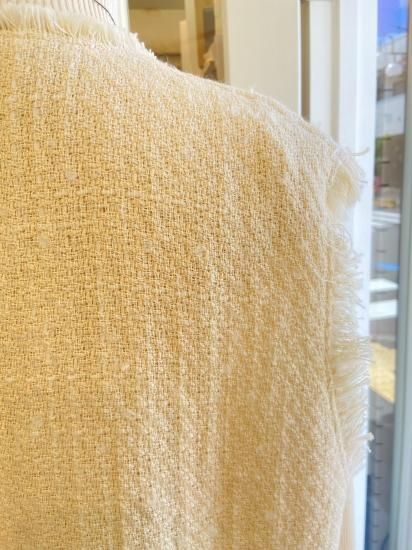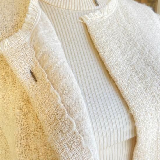 糸の表情を楽しむツイードシリーズふっくらとしつつもオーガニックコットンの糸の表情がしっかりと出た今までにないツイードで作られたジャケット、ベスト。一枚で秋の華やかなスタイルが叶うシリーズです。