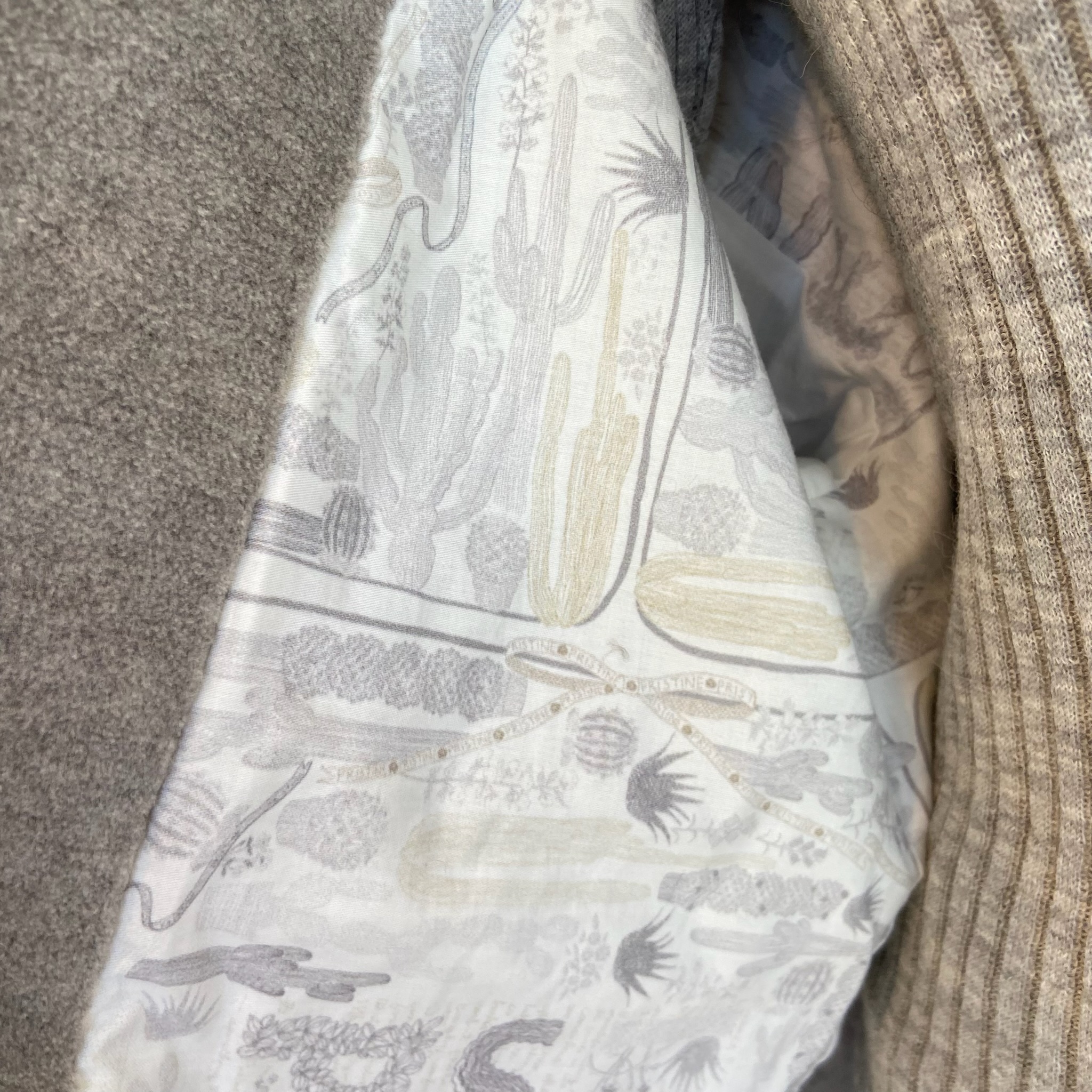 裏地にあしらったwinter cactusプリント