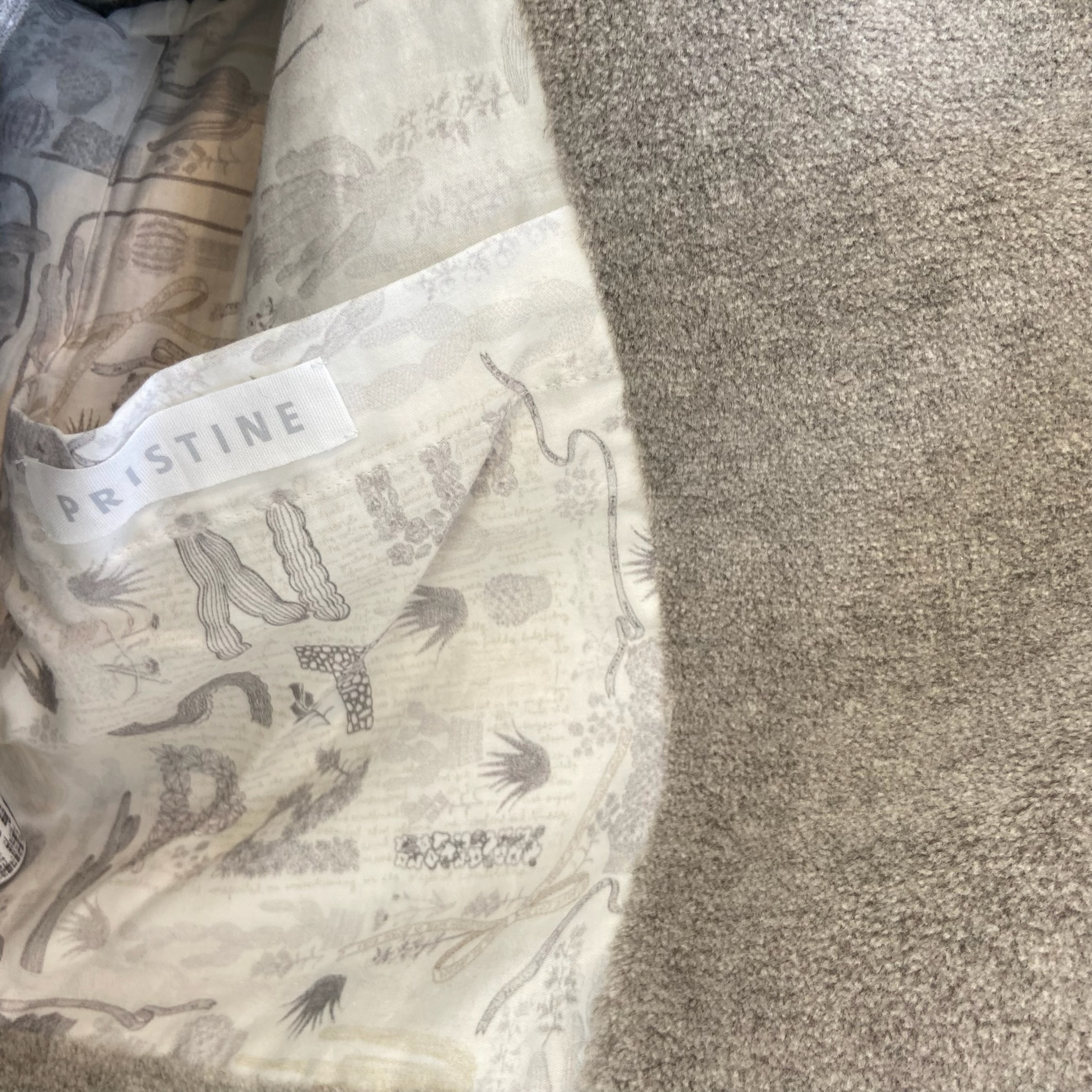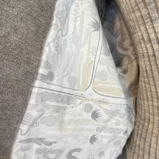 裏地にはwinter cactusプリントの生地をあしらっていて、ちらりとのぞくグレイッシュなプリント柄が着こなしのポイントになります。滑らかなサテン生地なので腕の通りや着心地も◎