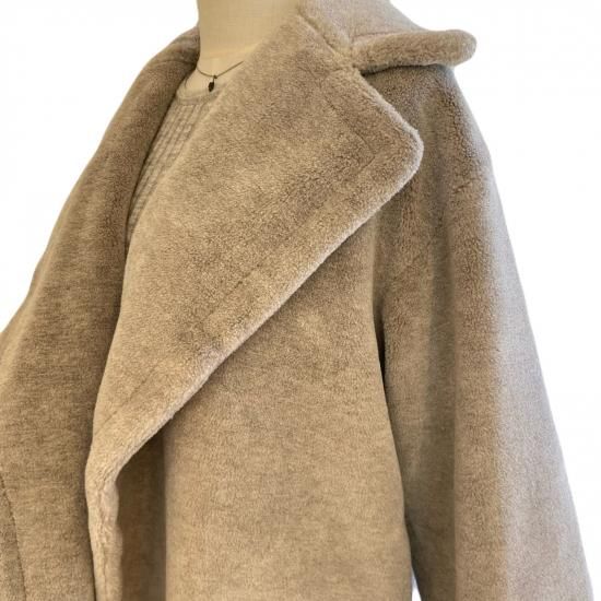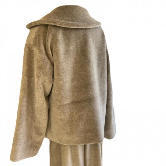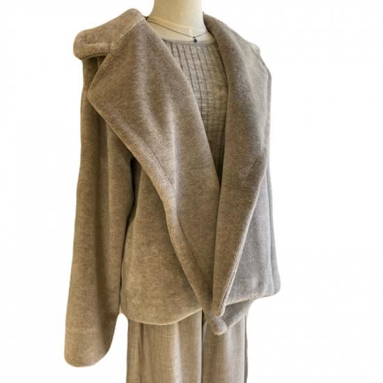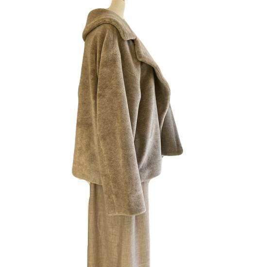 大きな衿とゆったりめのシルエット、あたたかでやさしい肌触りのヤクフェイクファーの素材感が魅力的なショートコートです。表側にはポケットは付けずに、内ポケットがあります。