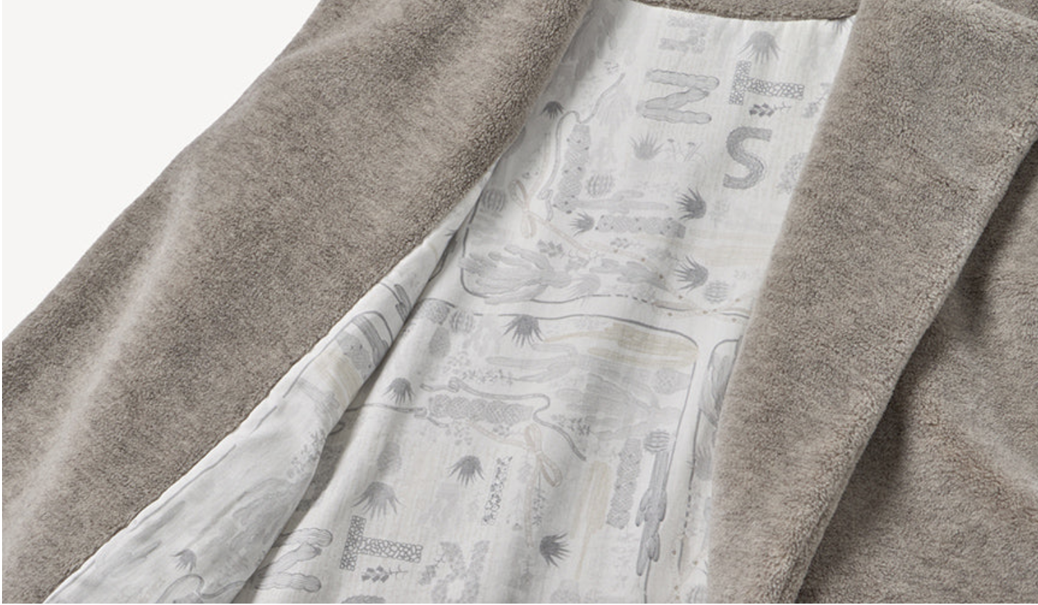裏地にはwinter cactusプリントの生地をあしらっていて、ちらりとのぞくグレイッシュなプリント柄が着こなしのポイントになります。滑らかなサテン生地なので着心地も◎