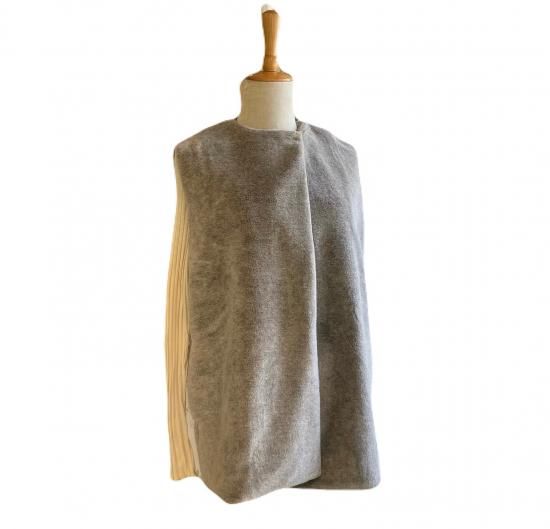 フェイクファーの生地には、ヤクとオーガニックコットンの混紡糸を使用しています。 まるで綿を触っているかのようなふわふわで肌にやさしい柔らかさ。腰をふるように見える編み機でゆっくりと低速で編んでいきます。原綿の繊維を整え、糸にして、編んだ後、パイルの糸を開撚してファーに仕上げていく、という手間を惜しまない丁寧な仕事から生まれる生地です。
