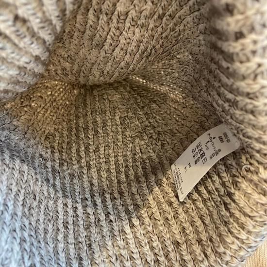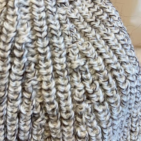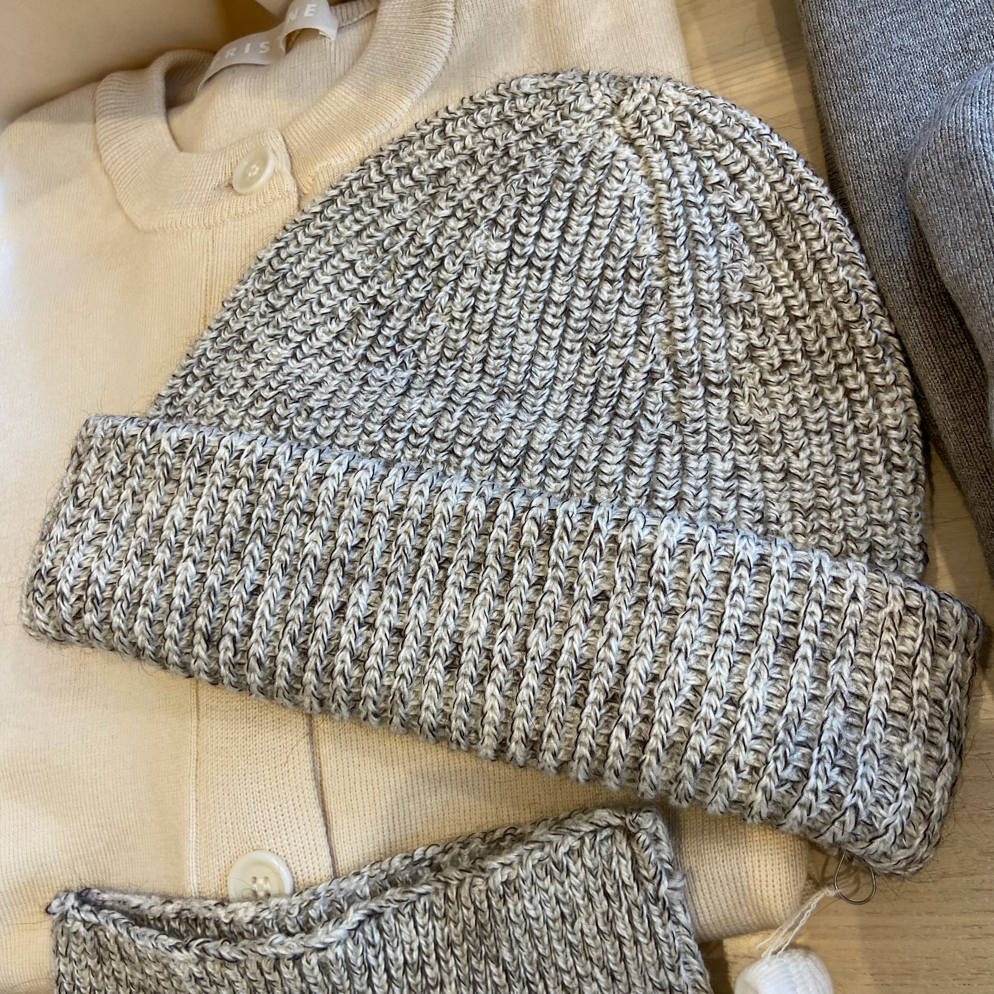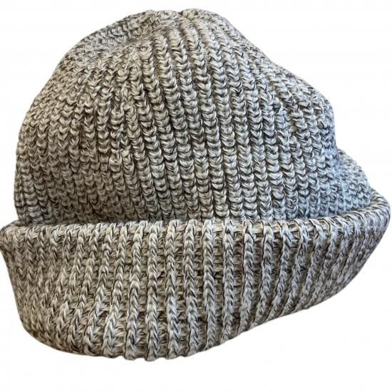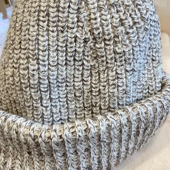 アルパカとコットン、ウールとコットンの撚糸を引き揃えて編み立てた片畦編みのニット帽。端を折る巾を変える事によって、頭の先にゆとりをもたせたり、ピッタリ頭に沿わせて被ったりお好みのシルエットにアレンジできます。あたたかみのあるふっくらとした編地が寒い季節にピッタリ。ギフトにもおすすめです。