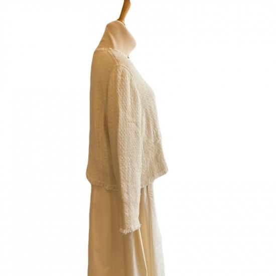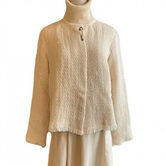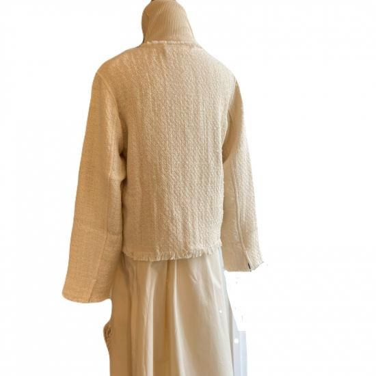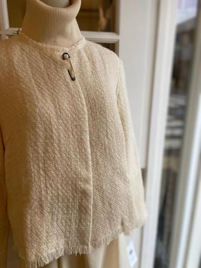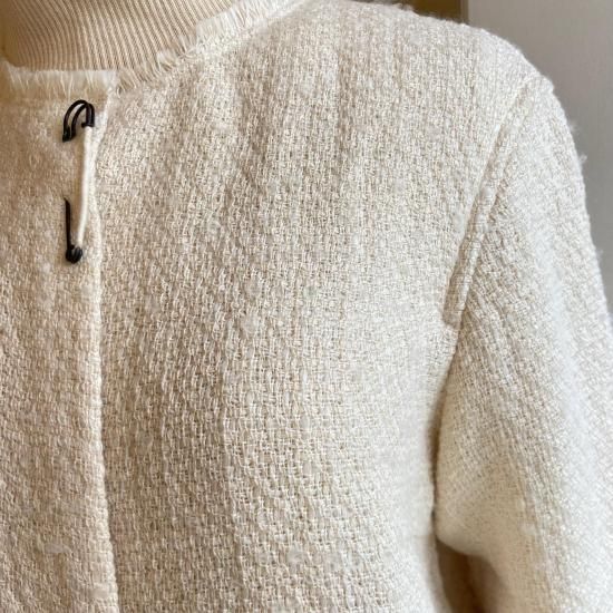 華やぐツイードのジャケットコットンとウールの様々な種類の糸を使用した、オリジナルのツイード生地のジャケット。表情豊かな糸使いを活かしたフリンジデザインで、シンプルながら華やかなアイテムです。